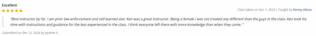 Kenny’s training philosophy is simple: firearms proficiency isn’t a hobby, it’s a life-saving skill. “You are your own first responder.”